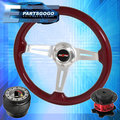 Red Wood Deep Dish Steering Wheel + Red Quick Release Adapter For 96-15 Civic