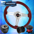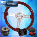 For 96-15 Civic Red Wood Deep Dish Steering Wheel + Quick Release + Extender